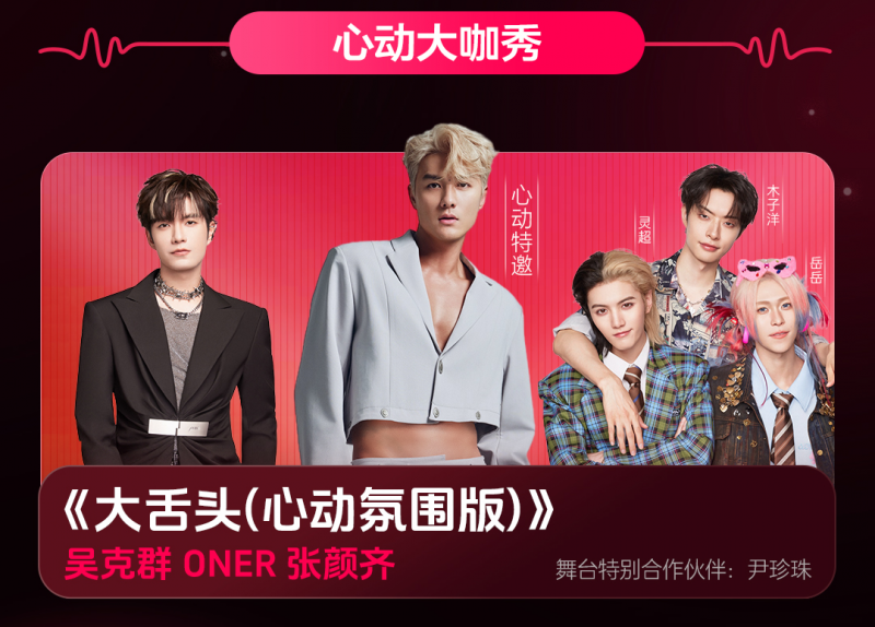 “心动成团夜” 开篇重头戏,将由ONER、吴克群、张颜齐携手带来心动主题曲《大舌头 (心动氛围版)》,熟悉的旋律搭配氛围舞台设计,开场即炸场!彩排现场已能感受到满格的心动值。