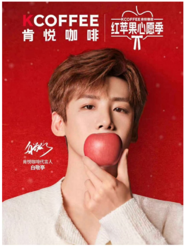 与代言人白敬亭的合作就是一大范例。2025年年初,肯悦咖啡就前瞻性地与白敬亭主演的青春剧《难哄》合作,《难哄》大火,肯悦咖啡也随之收获了一批粉丝;圣诞节期间,白敬亭手捧肯悦经典红苹果热美式的巨幅广告形象出现在许多城市的经典地标,偶像与经典产品的形象也一同深入人心。