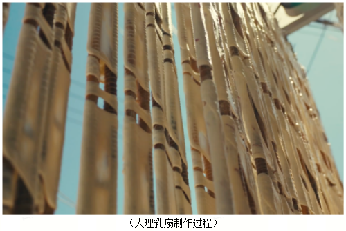 乳扇,是大理白族非遗美食,云南白族先民将鲜牛奶通过炼乳、凝乳、拉抻、晾晒等工艺制成带有浓郁奶香的小吃,制作时揉入高原食用玫瑰花瓣,成品自带花香清甜的玫瑰乳扇颇受食客欢迎。